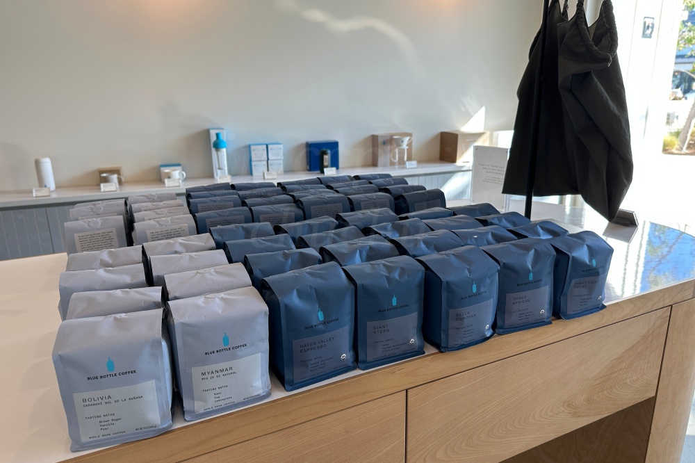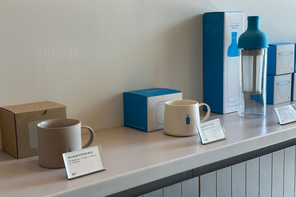 藍瓶咖啡的周邊商品也是人氣寵兒,馬克杯、保溫杯、保溫瓶、吸管杯等都是簡單好愛讓人忍不住想帶回家的設計,當然如果家裡有磨豆機的話也可以帶他們家的咖啡豆回家!